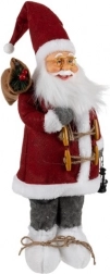 Die stilvolle Weihnachtsfigur Nikolaus mit einer Höhe von 45 cm bringt eine warme Weihnachtsstimmung nach Hause. Sie überzeugt durch hochwertige Verarbeitung, ein detailreiches Gesicht mit goldener Brille, eine Laterne in der Hand und einen Geschenksack. Dank formbarer Drähte in Mütze und Ärmeln lässt sich die Pose im Handumdrehen anpassen; stabile Schuhe sorgen für sicheren Stand auf Regal, Fensterbrett und neben dem Baum. Die Kombination aus Rot, Weiß und Grau passt zu jeder Weihnachtsdeko.