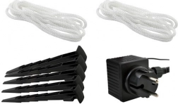 Die Polyester-Konstruktion mit Schutzart IP44 hält winterlichem Wetter stand. Im Lieferumfang befinden sich Leinen, Heringe und ein Netzadapter für sicheren Stand und Betrieb.