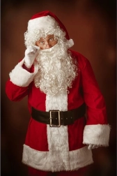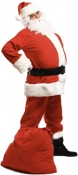 Im Lieferumfang ist alles enthalten: Jacke, Hose, Mütze, Gürtel, Stiefelstulpen, Perücke, Bart mit Schnurrbart, Handschuhe, Brille, Geschenkesack und Glocke – Sie brauchen nichts weiter.