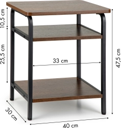 Dieser Tisch ist im modernen Loft-Stil gestaltet, der industrielle Elemente mit elegantem Design kombiniert. Seine drei Ebenen bieten ausreichend Platz für die Platzierung von Dekorationen, Büchern oder anderen Gegenständen, was ihn nicht nur zu einem ästhetischen, sondern auch zu einem praktischen Accessoire für Ihr Interieur macht.
