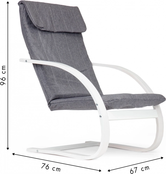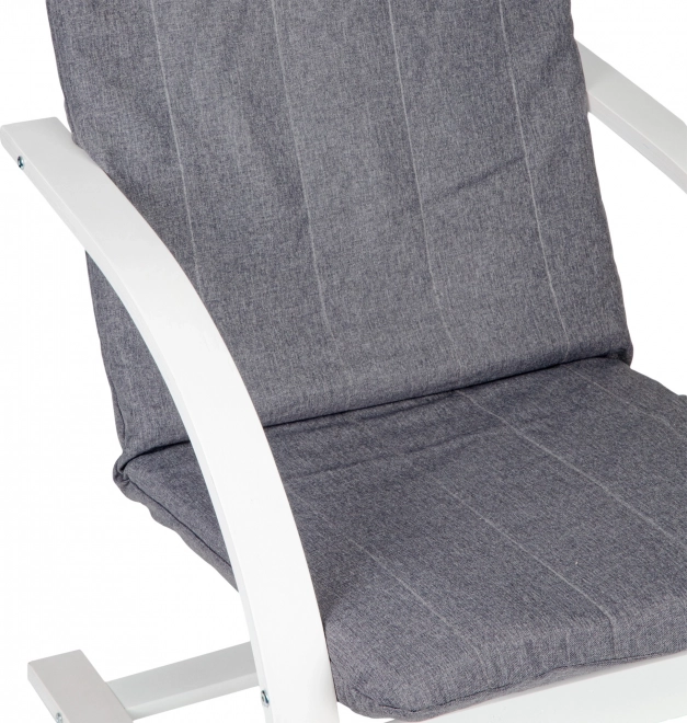 Entdecken Sie Komfort im skandinavischen Stil. Dieser finnische Schaukelstuhl der Marke ModernHome bringt beruhigendes Schaukeln, das Muskeln und Geist entspannt, und ergänzt zugleich sowohl moderne als auch klassische Interieurs perfekt. Der Sitz aus strapazierfähigem Stoff mit weichem Schaum und der ergonomisch geformte Rahmen bieten angenehme Rückenunterstützung.