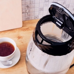 Mit unserem modernen und innovativen Design passt der Wasserkocher Eldom in jede Küche. Die Glaskonstruktion ermöglicht es Ihnen, den Wasserstand leicht zu überwachen, und die integrierte LED-Beleuchtung verleiht dem Produkt ein elegantes Aussehen.