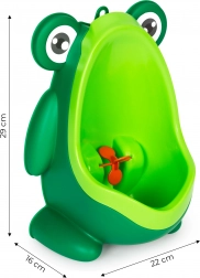 Das Urinal wurde speziell entwickelt, um den Lernprozess der Toilettennutzung zu erleichtern und angenehmer zu machen. Das farbenfrohe und funktionale Urinal ist die ideale Lösung für Kinder, die ihre Selbstständigkeit auf der Toilette entdecken. Das Urinal in Form eines bunten Frosches zieht die Aufmerksamkeit jedes Jungen auf sich und motiviert zur regelmäßigen Nutzung.