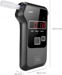 Dieser Alkoholtester AlcoMax AX9 ist ideal für den persönlichen Gebrauch. Dank des fortschrittlichen elektrochemischen Sensors, der Platinreaktionen mit Ethanolpartikeln verwendet, bietet er hohe Messgenauigkeit im Bereich von 0 bis 2‰. Das Ergebnis wird auf einem übersichtlichen LED-Display angezeigt.
