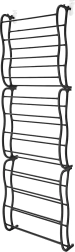 Die robuste Konstruktion kombiniert Metallrohre für die Ablagen mit widerstandsfähigen Kunststoffelementen an den Seiten. Drei miteinander verbundene Segmente bilden insgesamt 12 Ebenen, auf denen Sie bequem bis zu 36 Paar unterbringen. Die Montage ist schnell, ganz ohne Werkzeug und Bohren – ebenso leicht lässt sich das Regal auch umstellen.