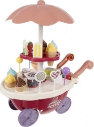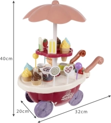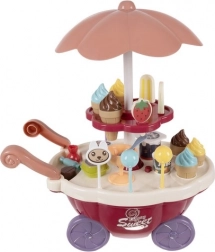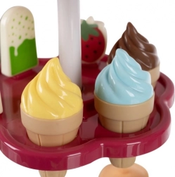 Kugeln, Eis am Stiel, Lutscher, Becher, Löffel und Münzen – alles, was Kinder zum Verkaufen, Servieren und Bezahlen brauchen, inklusive 360° drehbarem Ausstellungsregal.