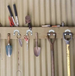 Hochgradig beständige Metallhaken für die Organisation von Werkzeugen in Ihrer Werkstatt oder im Garten. Dank ihrer Beständigkeit und hochwertigen Verarbeitung sind sie auch für schwere Werkzeuge geeignet.