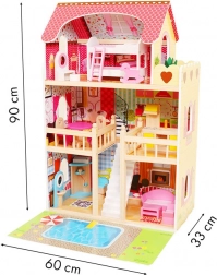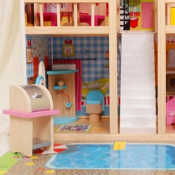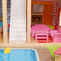 Holzpuppenhaus mit Möbeln, Pool und LED-Beleuchtung ECOTOYS