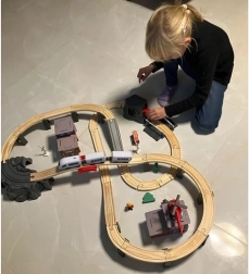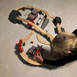 Kruzzel 22754 Holzeisenbahn mit Batteriebetrieb, 70 Teile, 480 cm