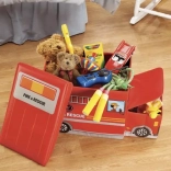 Stilvolle und praktische Spielzeugbox in Form eines Feuerwehrwagens macht Aufräumen zum Vergnügen. Sie hat große Kapazität, ist faltbar, leicht zu reinigen und behält dank stabiler Verstärkung auch leer ihre Form. Ideal für das Kinderzimmer – für Jungen und Mädchen.