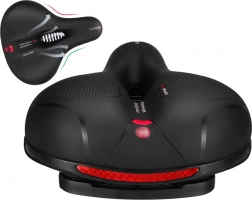 Dieser ergonomische Fahrradsattel besticht durch eine weiche Füllung aus elastischem Schaum und ein robustes Kunststoffmaterial, das wetterfest ist.
