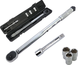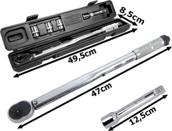 Der Drehmomentschlüssel (dynamometrisch) gewährleistet ein präzises Anziehen ohne Risiko von Gewindeschäden. Dank der stufenlosen Einstellung des Drehmoments im Bereich von 40–210 Nm behalten Sie bei jedem Anziehen die volle Kontrolle – ideal für Auto und Motorrad, den Fahrradservice und die Heimwerkstatt.