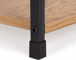 Der pulverbeschichtete Metallrahmen und die MDF-Ablagen mit Holzdekor vereinen Stabilität mit natürlicher Optik. Schutzfüße verhindern Kratzer auf dem Boden.