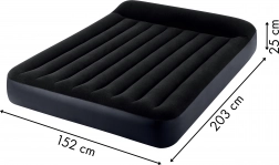 Die samtige INTEX-Matratze, mit den Maßen 203 x 152 x 25 cm, ist ideal für 2 Personen. Hergestellt aus robustem PVC-Material, die Oberseite ist mit einem angenehm weichen, wasserabweisenden Samtmaterial bezogen. Das Gesamtbild in einem eleganten Dunkelblau passt in jedes Interieur. Dank der eingebauten elektrischen Pumpe (Netz 220–240 V) ist die Matratze in 250 Sekunden einsatzbereit. Über das Boston-Ventil lässt sie sich in weniger als einer Minute entleeren, zusammenlegen und im Schrank verstauen.