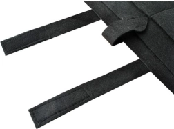 Der Organizer besteht aus Filzmaterial, das seine Leichtigkeit und einfache Handhabung garantiert. Die Installation des Organizers ist schnell und intuitiv: Der obere Teil wird mit Klettverschluss an der Rückseite der Kopfstütze befestigt und der untere Teil mit Metallhaken am Sitz fixiert.