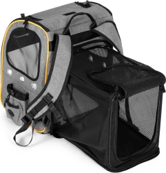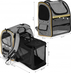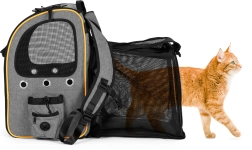 Praktischer und robuster Transport-Rucksack für Katzen und kleine Hunde, ideal für Reisen und Ausflüge. Bietet eine erweiterbare Konstruktion für mehr Platz, eine transparente Front für die Beruhigung des Tieres, großzügige Belüftung durch Mesh und Öffnungen, gepolsterte Gurte mit Brust- und Hüftgurt sowie eine weiche, herausnehmbare Unterlage für maximalen Komfort.