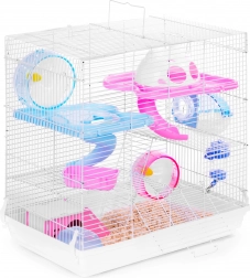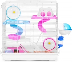 Vier Ebenen, verbunden durch zwei Rutschen, und ein integriertes Laufrad fördern die natürliche Aktivität und helfen, die Nager täglich in Topform zu halten.
