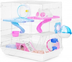 Der durchdacht konstruierte PETSI-Käfig schafft eine ideale Umgebung für Hamster, Ratten und andere kleine Nagetiere. Mehrere Ebenen mit verbindenden Rutschen fördern natürliche Bewegung und Erkundung, während das Häuschen einen ruhigen Rückzugsort zum Ausruhen bietet. Dank hochwertiger Materialien ist der Käfig langlebig, stabil und zugleich sicher für Tiere.