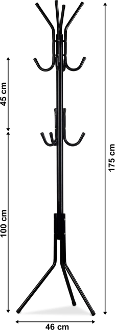 Entdecken Sie die praktische Lösung für den Eingangsbereich: Die Standgarderobe MODERNHOME in Schwarz verbindet eine stabile Metallkonstruktion mit einem zeitlosen Look. Die oberen Arme fassen mehrere Jacken und Mäntel, mittlere Haken sind ideal für Hüte, Regenschirme und Handtaschen, und die unteren Haken sind auf Kinder abgestimmt.