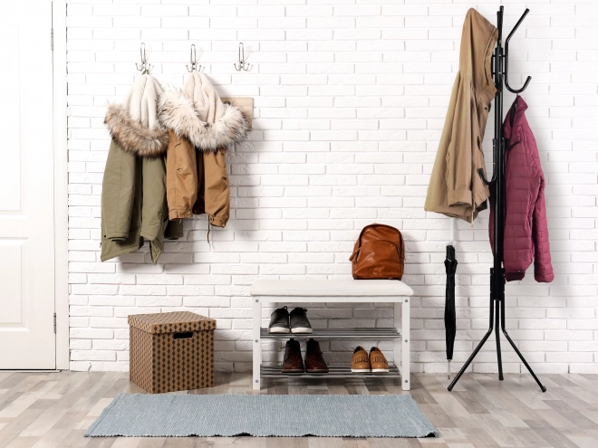 Die stabile dreibeinige Basis hält die Garderobe auch bei voller Beladung sicher, während Schutzkappen an den Füßen Kratzer auf dem Boden verhindern. Dank der einfachen Montage ist sie in wenigen Minuten einsatzbereit – für sofort mehr Platz und Ordnung im Abstellbereich.