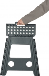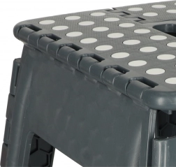 Dieser klappbare Hocker ist der ideale Helfer für Küche, Bad, Werkstatt und Kinderzimmer. Robuster Kunststoff und die rutschfeste Oberseite sorgen für einen sicheren Stand und angenehme Nutzung. Zusammengeklappt hat der Hocker kompakte Maße, sodass Sie ihn leicht im Schrank oder hinter der Tür verstauen können.