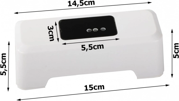 Höhe: 5 cm, Tiefe: 5,5 cm, Basisbreite: 15 cm
