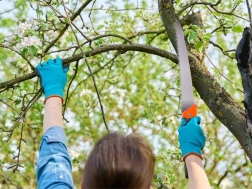 Auslichten von Bäumen und Sträuchern, Holzsägen im Garten und Obstgarten