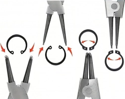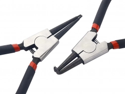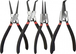 Umfassendes Set von Seger-Sicherungsringzangen für schnelle und sichere Handhabung von Innen- und Außenringen. Ein hochwertiger Stahlkörper und bequeme, rutschfeste Griffe erhöhen die Griffsicherheit, während gerade und gebogene Spitzen die Arbeit in schwer zugänglichen Bereichen erleichtern. Ideal für Auto-/Motorradwerkstätten, Industrie und Heimwerkstatt.