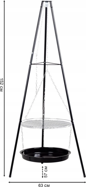 Dank seines stabilen dreibeinigen Aufbaus ist der Grill sicher und für den Außeneinsatz geeignet, egal ob im Garten oder Camping.