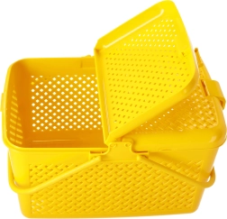 Korb aus hochwertigem Material. Ideal für Ausflüge mit Familie oder Freunden. Geräumig, strapazierfähig, funktional. Der Korb ist mit einer oberen Klappe ausgestattet, die in zwei Teile geteilt ist. Nach dem Abnehmen der Klappe kann er als Einkaufskörbchen verwendet werden.