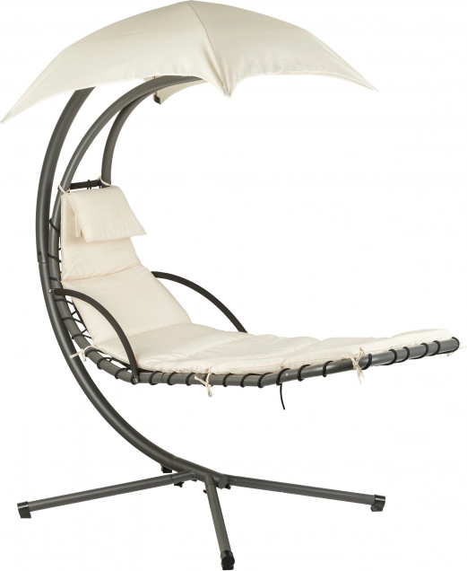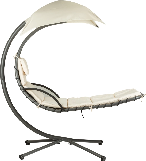 Die qualitativ hochwertige Konstruktion gewährleistet Stabilität und Sicherheit, während ein großer, verstellbarer Baldachin während heißer Tage angenehmen Schatten bietet. Die wasserabweisende, weiche Matratze mit Kopfstütze garantiert komfortable Entspannung. Lesen, Sonnenbaden oder ruhige Entspannung im Freien wird mit diesem Erlebnis nie vergleichbar sein.