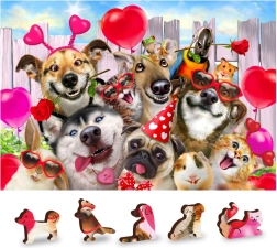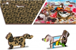 Jedes Puzzle hat ein Bild auf der Vorderseite und ein Formmuster auf der Rückseite, was doppelte Puzzlemöglichkeiten gewährleistet.