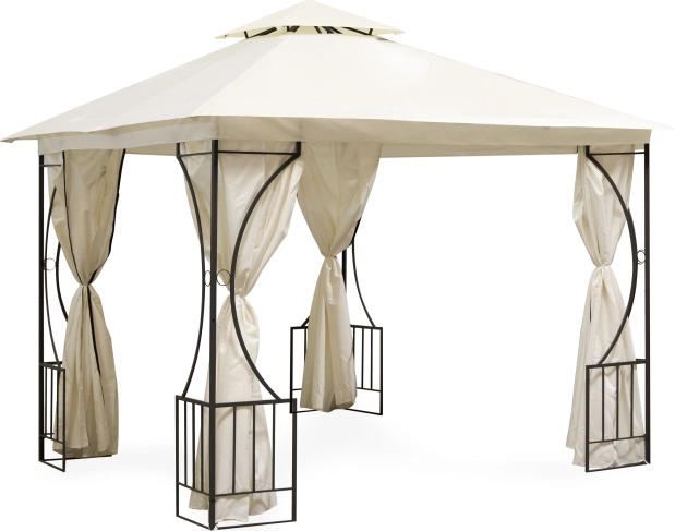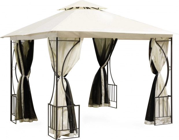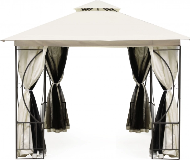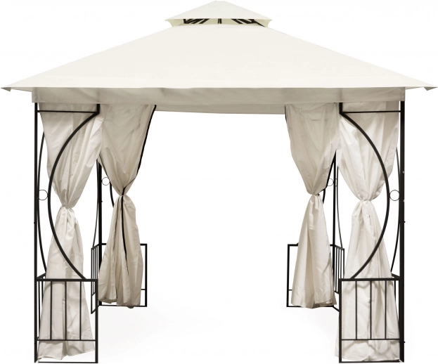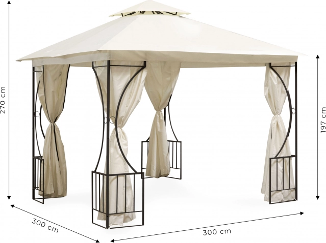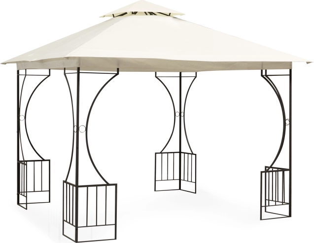 Der pulverbeschichtete Stahlrahmen gewährleistet Stabilität und Langlebigkeit. Dekorative Details verleihen dem Pavillon in jedem Garten ein elegantes Erscheinungsbild.