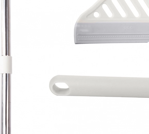 Die Kunststoffkonstruktion mit Metallstiel ist stabil und dennoch leicht. Nach Gebrauch einfach unter Wasser abspülen – und schon ist er wieder einsatzbereit.