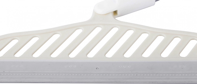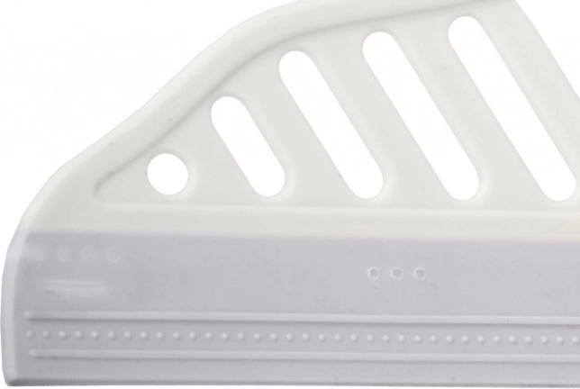 Der breite Kopf mit flexibler Gummileiste schmiegt sich perfekt an die Oberfläche an und leitet Wasser von Fliesen, Glas und Spiegeln effektiv ab.