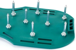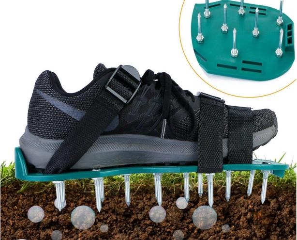 Man zieht einfach die Schuhe mit Spikes an und geht über den Rasen. Dadurch entstehen viele kleine Löcher, was eine effektive und wirtschaftliche Methode darstellt, um den Zustand des Rasens zu verbessern. Nach einigen Wochen regelmäßiger Anwendung erhöht sich das Wachstum und die Gesundheit des Rasens.