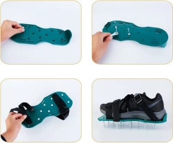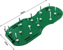 Diese Belüftungsschuhe erzeugen viele kleine Löcher im Boden, was die Belüftung des Bodens verbessert und das Wurzelwachstum fördert. Der Boden ist weniger kompakt, was ein schnelleres Eindringen von Wasser und Nährstoffen zu den Pflanzen ermöglicht.