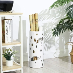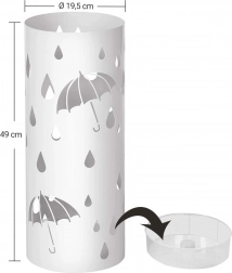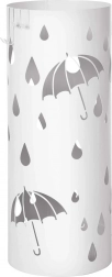 Der elegante weiße Regenschirmständer ist das ideale Accessoire für Ihr Zuhause. Moderner Design und offene Metallkonstruktion verleihen ein stilvolles Aussehen und beeindrucken jeden Besucher. Die weiße Farbe und die dekorativen Ausschnitte von Schirmen und Regentropfen ergänzen das Erscheinungsbild jedes Eingangs oder Flurs.