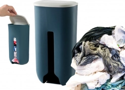 Schlanker blauer Korpus spart Platz und hält Tüten übersichtlich verstaut – in Küche, Bad oder Hauswirtschaftsraum.