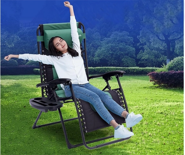 Das Schwerkraftsystem ermöglicht die Änderung des Liegewinkels und der Verriegelungsmechanismus sorgt für sichere Anwendung. Perfekt zum Sonnenbaden oder Dösen.