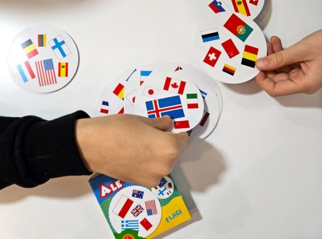 Entdecken Sie das schnelle und unterhaltsame Spiel Ale Pary – Flaggen von Alexander, das Geschwindigkeit, Reaktion und Wissen über Weltflaggen kombiniert. Die Spieler suchen gleiche Flaggenpaare und ordnen sie den richtigen Ländern zu – ideal für Familienabende und spielerisches Lernen mit Kindern ab 4 Jahren.