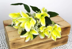 Verwandeln Sie jeden Raum mit diesem beeindruckenden Lilienstrauß, der 7 echt aussehende Blüten enthält. Die kräftige gelbe Farbe ist der Schlüssel, um den Raum aufzuhellen. Diese Lilien können nicht verwelken, was eine lange Lebensdauer und keinen Pflegeaufwand gewährleistet. Geeignet für alle Anlässe – von der Dekoration des Esstisches bis hin zu einem zauberhaften Geschenk für Ihre Liebsten.