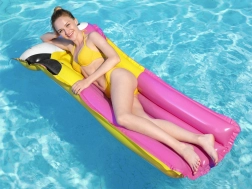 Ein integriertes aufblasbares Kissen stützt Kopf und Nacken für echte Erholung. Die farbenfrohe Sommergrafik mit Vogelmotiv verleiht Ihrem Wasserspaß Stil und gute Laune. Die leichte Konstruktion ermöglicht schnelles Auf- und Abpumpen sowie einfaches Tragen und Verstauen.