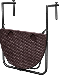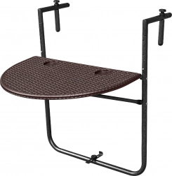 Dank 3-stufiger Höhenverstellung passen Sie den Tisch Ihren Bedürfnissen an. Wenn Sie mehr Platz brauchen, klappen Sie ihn in wenigen Sekunden einfach nach unten. Die Montage geht schnell – einfach am Geländer einhängen und die Klemmen festziehen. Verstellbare Halterungen passen an Geländer mit 6–14,5 cm Breite.