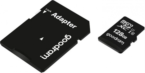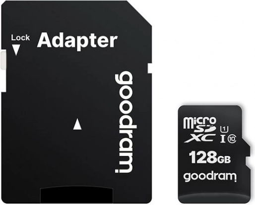 Goodram microSD-Speicherkarte 128GB, UHS-I-Geschwindigkeit, inklusive Adapter, ideal für Smartphones.