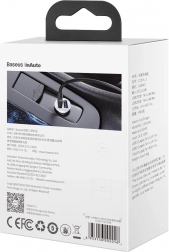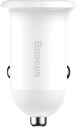 Elegantes und kompaktes weißes Autoladegerät von Baseus ermöglicht gleichzeitiges Laden von zwei Geräten mit effizienter Leistung von 4,8A. Perfekt zum Aufladen Ihrer Geräte unterwegs.