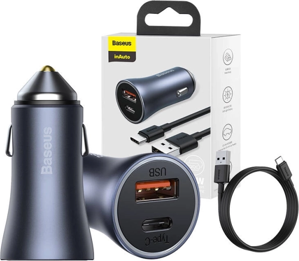 Autoladegerät BASEUS Golden Contactor Pro 40 W mit USB‑A und USB‑C, PD/QC4.0+/SCP + USB–USB‑C‑Kabel 1 m (grau)