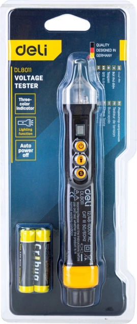 Der Spannungsprüfer von Deli ist zur einfachen Spannungsdetektion ohne direkten Kontakt konzipiert, was eine höhere Sicherheit bei der Arbeit mit Elektrizität gewährleistet. Dank des einstellbaren Empfindlichkeitsmodus liefert er genaue Ergebnisse. Das Gerät verfügt über: