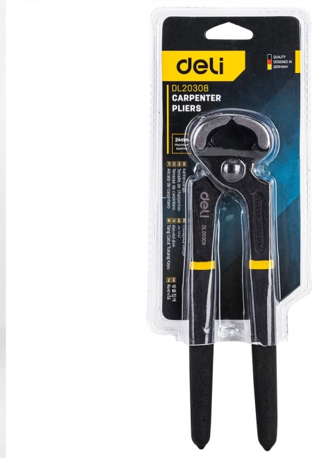 Die Schreinerzange Deli DL20308 ist aus hochwertigem Kohlenstoffstahl gefertigt, der maximale Festigkeit und eine lange Lebensdauer des Produkts garantiert.