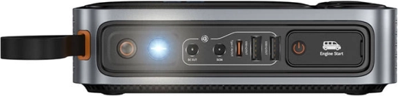 Als leistungsstarke Powerbank mit 26 800 mAh (99,2 Wh) lädt sie Notebook, Smartphone und Kfz‑Zubehör schnell auf. Verfügbar sind ein USB‑C‑Port mit bis zu 100 W, zwei USB‑A 5 V/3 A und ein DC‑Ausgang 12 V/10 A. Gleichzeitig versorgt sie bis zu 3 Geräte (kombinierte Leistung bis 135 W), während das digitale Display den Batteriestatus klar anzeigt. Die LED‑Taschenlampe mit den Modi Dauerlicht, SOS und Blinken erhöht die Sicherheit in Notfällen – und der integrierte Kompass erleichtert die Orientierung.